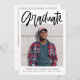 Cartão com fotos simples e moderno de lançamento de graduação com um roteiro manuscrito que diz "Formando". Perfeito para segundo grau ou formando universitário. A parte traseira do cartão tem uma imagem de segundo junto com a sua mensagem.