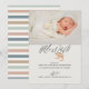 Dar boas-vindas a um novo bebê no mundo é uma boa ocasião. Este novo cartão de anúncio do Hello World!, recém-nascido, com listras coloridas no verso, inclui uma fotografia adorável do novo membro da família, juntamente com as estatísticas de nascimento do bebê ou da menina, ou seja, nome, data de nascimento e peso. Um bem apreciado ideal para marcar o início da vida de um pequeno