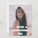 Cartão de anúncio de formatura fantasiosa e divertida para enviar a família e amigos. A letra desenhada na mão diz "na minha era de formatura."