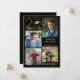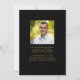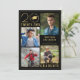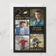 Anúncio de graduação em preto e ouro moderno com um design de tipografia na moda para A CLASSE DE "ANO" (ano editável) com uma colagem de fotos de 4 fotos na frente e 1 na parte traseira e o nome do formando e da escola contra um fundo de cores personalizado (a amostra mostra preto) que você pode mudar para uma cor ou cor favorita da escola ou escolher entre uma variedade de planos gráficos de estilo para dar uma aparência personalizada. A parte de trás contém informações adicionais sobre sua graduação. ALTERAÇÃO DE COR: Clique em PERSONALIZAR MAIS na seção PERSONALIZAR. ASSISTÊNCIA: Para obter ajuda sobre modificação/personalização do design, alteração de cor, transferência do design para outro produto ou se você quiser coordenar itens, entre em contato com o designer ANTES DE PEDIR por meio do Zazzle Chat ou makeitaboutyoustore@gmail.com.