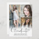 Anuncie o seu segundo grau ou formando universitário com este cartão de lançamento moderno, com um design de título de FORMANDO de tipografia com letra na moda na sua escolha de cores de texto e gráficos e 4 fotos (3 na frente e 1 na parte traseira). O verso oferece um campo de texto para informações sobre as realizações, atividades e planos futuros do seu formando. ASSISTÊNCIA: para obter ajuda com a modificação/personalização do design, transferir o design para outro produto ou, se você quiser coordenar itens, entre em contato com o designer ANTES DE ENCOMENDAR através da guia MENSAGEM de Bate-papo Zazzle ou envie um email para makeitaboutyoustore@gmail.com.