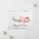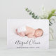Anúncio de nascimento da Colagem de Fotos do Nome do Bebê do Script Moderno A frente da placa é um solteiro grande com uma elegante e moderna cobertura de script que dizia o nome do bebê em preto. A linha abaixo é para estatísticas de nascimento de bebês. O verso oferece uma coleção de três fotos, uma linha de texto para nomes de famílias. O design é definido como uma menina, mas também vai ajustado um menino.