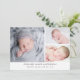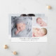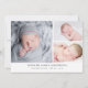 Um anúncio de nascimento moderno minimalista para compartilhar a notícia do seu bebê recém-nascido. Este cartão neutro por gênero é perfeito para uma menina ou um bebê com a frente apresentando uma colagem fotográfica de 3 fotos com o nome do bebê em uma simples tipografia. Personalize com data de nascimento, peso e altura. O verso apresenta uma foto com os nomes dos pais