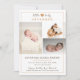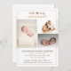Nosso anúncio de nascimento de uma bebê recém-nascida apresenta uma colagem de fotos com três fotos na frente e uma extra nas costas. A design inclui um coraçãozinho fofo e um texto na moda dizendo "mocinha". Este anúncio de na moda é fácil de personalizar com o nome do bebê e as estatísticas de natalidade. Este anúncio elegante e clássico do bebê é funcional e bonito. Os tons neutros garantem que ele complementa qualquer seleção de fotos de forma elegante. É a maneira perfeita de compartilhar sua alegria com a família e os amigos.