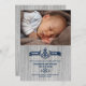 Preso pelos clássicos elementos náuticos de uma âncora e da roda de um navio, uma faixa náutica rústica destaca o nascimento de um novo bebê ao colocar seu nome na faixa! O fundo é madeira falsa, vestida pelo oceano, rústica, com uma foto da sua pequena e doce, acima. Uma bússola serve como ponto focal para o meio flanqueado por âncoras. Também pode ser usado para um Sip and See. Coloque velas e todos a bordo para o mais novo membro da tripulação! Disponível com produtos correspondentes. http://www.zazzle.com/rustic_nautical-256849403767531548