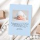 Anuncie a chegada do seu bebê com este cartão de anúncio de nascimento moderno e minimalista, apresentando a foto vertical do seu bebê mostrada em um charmoso quadro ondulante sobre um fundo azul-claro. Abaixo da foto, personalize facilmente a design com o nome do seu bebê e as estatísticas de natalidade em fontes limpas e elegantes. A parte traseira da placa inclui uma foto horizontal com espaço para sua mensagem personalizada — perfeita para compartilhar uma nota doce com amigos e familiares. Este simples, mas na moda, anúncio de nascimento combina a design contemporânea com um toque de talento retrô e é ideal para anúncios de bebês neutros em relação ao gênero.