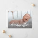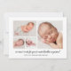 O anúncio de nascimento moderno apresenta uma fotografia de cheio na frente e quatro menores nas costas. O nome do seu bebê está escrito na frente em um texto elegante. Suas estatísticas de nascimento estão abaixo em uma letra simples e ousada. Não se preocupe, uma sobreposição especial garante que o nome ficará visível, independentemente da foto que você usar. Avós, tias e tios adorarão ver todas as fotos! Há espaço nas costas para uma saudação personalizada. A design neutra do gênero é perfeita para um bebê ou para uma menina.