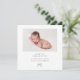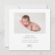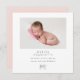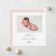Um belo anúncio de nascimento minimalista para anunciar a chegada da sua menina. Este anúncio quadrado apresenta a sua foto favorita da sua filha e texto na fonte moderna da cinza. Abaixo está uma ilustração de um arco. O reverso está em cor-de-rosa claro e robusto.