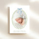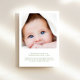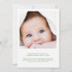Anúncio de nascimento charmoso e único e neutro em termos de gênero para apresentar seu novo bebê à família e amigos com uma estrutura de aquarela verde complementada por um arco azul de coquete, sua foto, e suas estatísticas de nome e nascimento na tipografia serif clássica. No verso, adicione uma foto adicional e personalize sua mensagem.