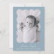 Este moderno e mínimo Elegante Blue Dusty O cartão de anúncio de nascimento do bebê é modesto e elegante. O cartão totalmente personalizável apresenta uma foto na frente com o nome do seu bebê, estatísticas de natalidade e nomes dos pais. O fundo mostra uma colagem de três fotos. Perfeito para compartilhar sua alegria, este design de coquete minimalista é ideal para anúncios de bebês neutros em termos de gênero. Celebre seu recém-nascido com este simples e elegante cartão de anúncio.