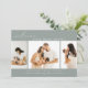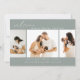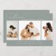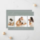Este simples cartão de nascimento de colagem fotográfica moderno é perfeito para compartilhar as boas notícias da chegada do seu bebê. Ele apresenta uma colagem de fotos com três fotos em um fundo verde empoeirado. Adicione o nome do seu bebê e as estatísticas de nascimento para personalizar o cartão.