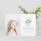 Cartão modelo de anúncio de nascimento de um bebê azul, bonito, com ilustração adorável de dinossauro bebê azul dormindo sob as estrelas amarelas na frente. 1 imagem do seu recém-nascido que pode ser adicionada a esta placa (frontal). A parte traseira apresenta um adorável fundo branco azul pastel com bolinhas com espaço para sua mensagem pessoal. Cartão perfeito para anunciar a chegada do seu novo bebê com as estatísticas de nascimento. Excelente para o bebê e para a menina. Perfeito para todas as estações!
