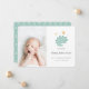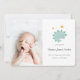 Cartão modelo de anúncio de nascimento de um bebê azul, bonito, com ilustração adorável de dinossauro bebê azul dormindo sob as estrelas amarelas na frente. 1 imagem do seu recém-nascido que pode ser adicionada a esta placa (frontal). A parte traseira apresenta um adorável fundo branco azul pastel com bolinhas com espaço para sua mensagem pessoal. O papel tem belas bordas redondas. Cartão perfeito para anunciar a chegada do seu novo bebê com as estatísticas de nascimento. Excelente para o bebê e para a menina. Perfeito para todas as estações!