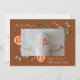 Cartão de nascimento de feriado russo e moderno com 2 fotos do seu recém-nascido com ilustração aquosa de botânicos de inverno, incluindo maleta, ramificação de pinheiros, bagas, laranja, etc. O fundo é terracotta marrom.