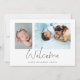 Mínimo 2 Fotos Bem-Vindo Anúncio de Nascimento do Script. Basta substituir as duas amostras de fotos por suas próprias e personalizar com o nome do seu bebê e a data de nascimento no fundo e as estatísticas de natalidade no verso. Bem-vindo está em um script de na moda set.