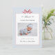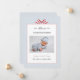 Adorável, moderno e simples fotografia de um bebê Cartão de anúncio de nascimento com arco vermelho pintado manualmente em fundo azul e branco empoeirado.