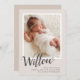 Este anúncio de nascimento minimalista apresenta uma grande fotografia e uma bonito caligrafia. O nome do seu novo bebê está escrito em carvões, em cartazes de cinza e sobrepõe sua foto favorita. Abaixo da caligrafia, adicione o nome do seu cheio, estatísticas de natalidade e seus nomes. O fundo castanho claro na frente e o fundo mais escuro do que o fundo na parte de trás do cartão podem ser alterados se você quiser. Você também pode adicionar fotos adicionais e uma mensagem personalizada no verso.