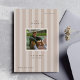 Graduation photo announcement card with a sporty, neutral coloured striped background, ideal for athletes.