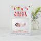 Noites Silenciosas Joy Foto Natal Anúncio é uma maneira divertida de mostrar seu novo bebê ao mundo. Decorado com uma granja com meias de natal e presentes sobre a textura da neve, é um cartão de natação de bebê de feriado muito bom para enviar