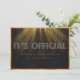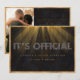 Procurando um anúncio de casamento elegante e sofisticado para uma fuga romântica? Veja nosso Anúncio de Casamento Fuga Romântica Foto Preto Dourado É Oficial! Este impressionante anúncio de casamento apresenta uma tipografia moderna e ousada com um efeito dourado digital impressionante na moldura. As palavras "É oficial" brilham com um efeito diamante digital cativante, adicionando um toque extra de luxo. Contra um fundo preto elegante, este anúncio de casamento com foto no verso exala elegância e sofisticação, perfeito para casais que buscam um estilo contemporâneo e sofisticado que se destaca. Ideal para uma celebração glamourosa e sofisticada! Você pode adicionar uma imagem.