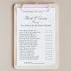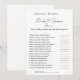 Este jogo de perguntas sobre chás de panela ou festas de solteira é perfeito para um chá de panela ou festa de solteira casual. A design romântica moderna incorpora letras negras clássicas.