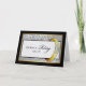 Noivado Anunciado, Ele Colocou um Anel nele! Cartão de saudação de anúncio do noivado elegante com uma ilustração de um anel de ouro com três diamantes e quadro preto esboçado com cor de ouro. Arte, imagem e direitos de autor © Shoaff Ballanger Studios.