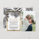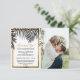 Folha de ouro elegante, chic e praias tropicais modernas imprimiram esboços em ouro e palmeiras pretas em branco com falsa tipografia de sequências de ouro impressas, cartões de anúncio de noivado. Este design clássico e sofisticado é perfeito para o casal clássico, de tendências e na moda de casamentos. Personalize com sua própria mensagem na frente e um monograma personalizado inicial no verso. Todas as impressão de fotos.