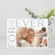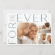 Um elegante cartão de noivado de colagem de fotos com três fotos (um quadrado e dois horizontais), com "FOREVER" em letras modernas ao longo do topo e do lado esquerdo. Personalize com sua mensagem personalizada (mostrada com "estamos noivos!") e seus nomes.