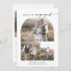 Este moderno cartão de anúncio do noivado de colagem de fotos do boho-arch faz o cartão de anúncio perfeito e simples. O boêmico design preto e branco apresenta uma tipografia singular de letras industriais com estilo chic minimalista. Personalize a frente do cartão com 3 fotos e seus nomes. Inclua uma foto adicional e a história ou mensagem de anúncio da sua proposta na parte traseira do cartão.