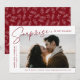 Compartilhe as notícias do seu noivado surpresa com estes anúncios elegantes do noivado fotográfico. A design apresenta a frase "Surpresa, nós nos envolvemos!" em uma moda de burgundy e moderna letra. Sua foto de noivado é apresentada na parte central direita do design com seus nomes e data de noivado mostrada à esquerda. Personalize o anúncio do noivado surpresa adicionando detalhes adicionais abaixo, como cidade/estado do casamento, site do casamento, etc. O anúncio se reverte para mostrar um padrão foliar branco em um fundo burgundy.