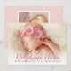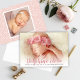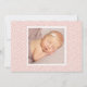 Cartão de anúncio de nascimento com foto simples e doce apresenta seu recém-nascido com uma foto frontal 5 x 7 com sangria total com uma sobreposição dramática de nome em rosa rosado superdimensionado com detalhes do nascimento e uma mensagem de "Amor" dos pais. Um padrão de bolinhas rosa bege com uma foto quadrada extra adorna a parte traseira. As cores do texto rosa e cinza carvão e a cor traseira rosa bege podem ser modificadas para combinar com suas fotos. Todo o texto é totalmente personalizável.