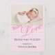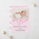 Escrita e tipografia bonitinha de "Amor Bebê" com xadrez rosa na frente e faixa cor-de-água rosa no lado oposto. Área para fotografia de recém-nascidos. Adicione o nome do bebê e pais orgulhosos e você tem um anúncio de nascimento adorável para "apresentar sua querida menina". Parabéns!