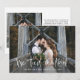 Este simples e elegante cartão de anúncio de fuga para casamento apresenta uma foto pessoal do casamento na frente, com as palavras "nos casamos" em escrita rústica e branca à mão. O verso do cartão tem espaço para outra foto, além de espaço para detalhar os pormenores da fuga ou fornecer detalhes para uma recepção ou celebração após o casamento. Um design elegante que é a maneira perfeita de informar amigos e familiares que você está casado!