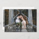 Este simples e elegante cartão de anúncio de casamento apresenta uma foto pessoal do casamento na frente, com as palavras "nós nos casamos" em uma fonte rústica e manuscrita em branco. O verso do cartão tem espaço para outra foto, além de espaço para detalhar os pormenores do casamento ou fornecer detalhes para uma recepção ou celebração após o casamento. Um design elegante que é a maneira perfeita de informar aos amigos e familiares que você está casado!