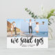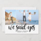 Avise amigos e familiares que você fugiu para se casar e que adoraria que eles se juntassem a você para uma festa de celebração com este moderno anúncio de casamento de fuga para fotos.
