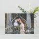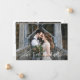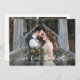 Simples e moderno anúncio de casamento Cartão frente e verso com um roteiro casual escrito à mão que diz "nós amarramos o nó" em cima da sua foto. Há corações no texto. Este cartão tem 3 fotos no total.