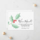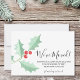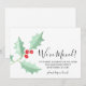 Ele é decorado com azevinho e frutas em tons de vermelho e verde e tipografia cursiva.