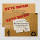 Aviso divertido de caixa de papelão para amigos e familiares informando onde estamos......