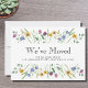 Este cartão de anúncio de mudança botânico é decorado com delicadas flores de aquarela e folhagens em tons pastel.