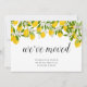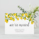 Com limões e flores, este cartão de anúncio de mudança de casa moderno e elegante pode ser personalizado com o seu novo endereço e detalhes de contato. Concebido por Thisisnotme©