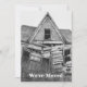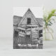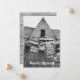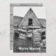 O cartão de anúncio de mudança mostra uma foto em preto e branco de uma casa velha, dilapidada, abandonada e decrépita. A porta da frente, janelas quebradas e telhado inclinado são mostrados. O verso do cartão inclui o novo endereço e informações de contato. Personalize o texto para anunciar sua mudança.