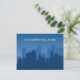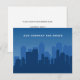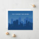 Este novo anúncio de mudança de endereço chic da empresa informa aos seus clientes e parceiros comerciais que você está mudando para um novo escritório. Forneça aos seus clientes e contatos comerciais as novas informações de contato sobre este cartão simples e moderno Nosso Office Moved para uma corporação. Personalize seus detalhes na parte de trás deste legal horizonte azul de prédio no design.