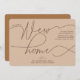 Uma maneira simples, mas bonita, de anunciar a sua jogada. A design apresenta um fundo ensurado moderno com um cabeçalho castanho que diz "Temos uma nova casa" numa combinação de fontes modernas. Personalize com seu endereço e nomes na frente e, no verso, você pode adicionar outra mensagem aos amigos e à família.