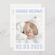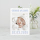 Branco ou qualquer obrigado a cores que você conheça com sua foto e o nome e a data do bebê na frente. No verso está o texto personalizável "obrigado você" em uma fonte sans serif moderna e uma mensagem personalizada. Você pode alterar todas as cores, mover e redimensionar elementos com a ferramenta design.