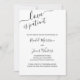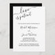 Cartão de anúncio de adiamento de casamento com paleta de cores preto e branco minimalista. "O amor é paciente", juntamente com os nomes da noiva e do noivo, é escrito à mão em letra cursiva elegante. O modelo está configurado para que você personalize a mensagem de atualização do seu casamento. A redação da amostra lê "devido a eventos recentes, o casamento de [seus nomes] foi adiado. Vamos informar assim que definirmos uma nova data. Foi uma decisão difícil e agradecemos a sua compreensão" - que você pode manter ou editar como desejar.