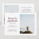 Se você tomou a decisão de fugir em vez de esperar por uma data de casamento adiada, compartilhe sua grande notícia com este cartão de anúncio de fuga. Ele apresenta texto em cor roxa e cinza escuro e espaço para uma única foto vertical na frente, bem como espaço para a data e local da fuga. O verso do cartão tem espaço para outra foto e uma nota pessoal.