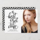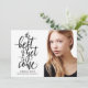 Este anúncio de graduação de fotos traz as palavras "o melhor ainda está por vir" em um roteiro manuscrito preto sobre fundo branco com o nome do formando, a escola e o ano de graduação em preto. Texto totalmente personalizável. Personalize com uma foto favorita do seu formando. Os detalhes da festa de formatura podem ser facilmente adicionados à parte traseira, excluindo o plano de fundo existente.