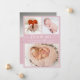 Anúncio De Cor Rosa Blush De Nascimento Obrigado Cartões De Colagem Fotográfica. Anúncio de nascimento elegante e minimalista apresentando 3 das suas fotos favoritas de bebês na frente, com um texto bonito escrito "obrigado você" em um roteiro suave de caligrafia com caudas de pântano suave ou cor rosa poeirenta. Adicione o nome do seu bebê à frente e à natalidade. No verso há espaço para o seu obrigado que você manda e uma foto de bebê. Você pode personalizá-lo facilmente.