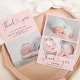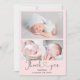 Cartões de agradecimentos moderno , 4 fotos anúncio de nascimento de bebê , com um legal e elegante roteiro de pincel escrito à mão e cores de coração e cores editáveis em rosa-pincel pastel. Adicione 4 das suas fotos de bebê favoritas.