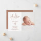 Um guião moderno, simples e elegante, saudação tipografia, anúncio de nascimento de bebê com uma colagem fotográfica, e uma elegante caligrafia tipográfica, com nome de bebê saudável. Apresentando o bebê! A cor de fundo boho terracotta é totalmente editável.